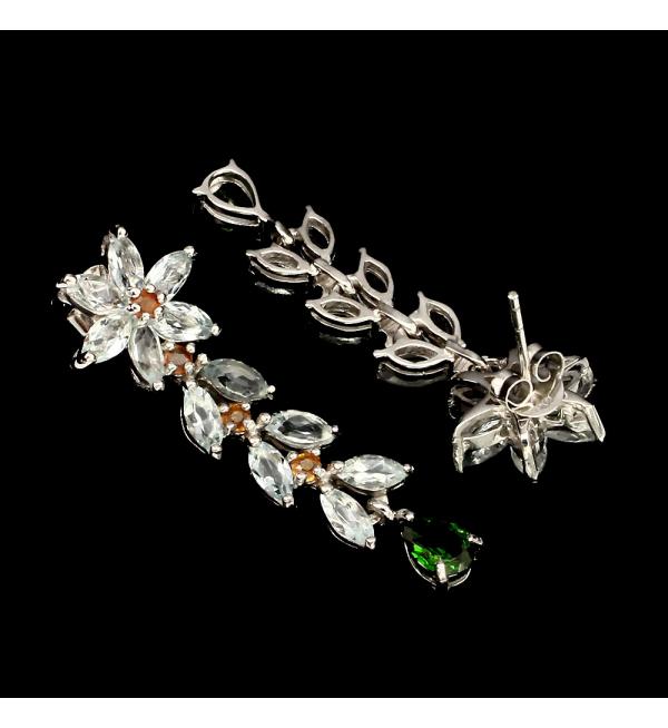 Купить серьги с аквамарином, хромдиопсидом и падпараджа сапфиром "Эйфория" в Киеве