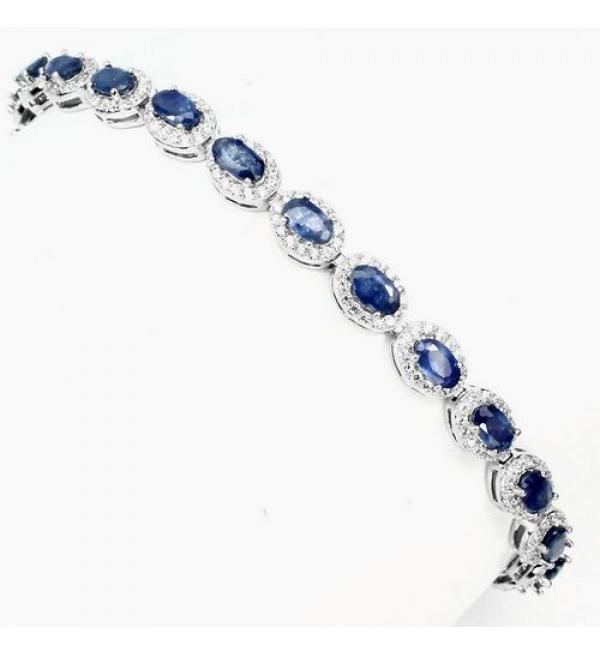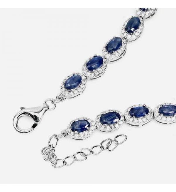 Классический серебряный браслет с чистыми сапфирами класса ААА+