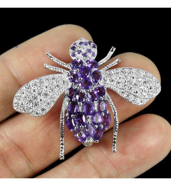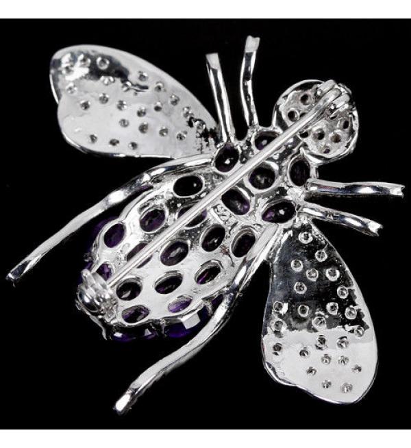 Серебряная брошь с драгоценным камнем аметист купить в Украине. Украшение в наличии. Доставим серебряное украшение брошь Муха в любую точку Украины в течении 2-х дней.