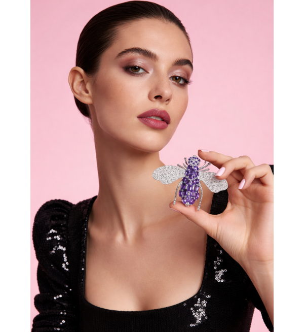 - Главная » АКЦИИ и СКИДКИ до -70% на украшения » Серебряная брошь с натуральным аметистом "Муха" (Видео)