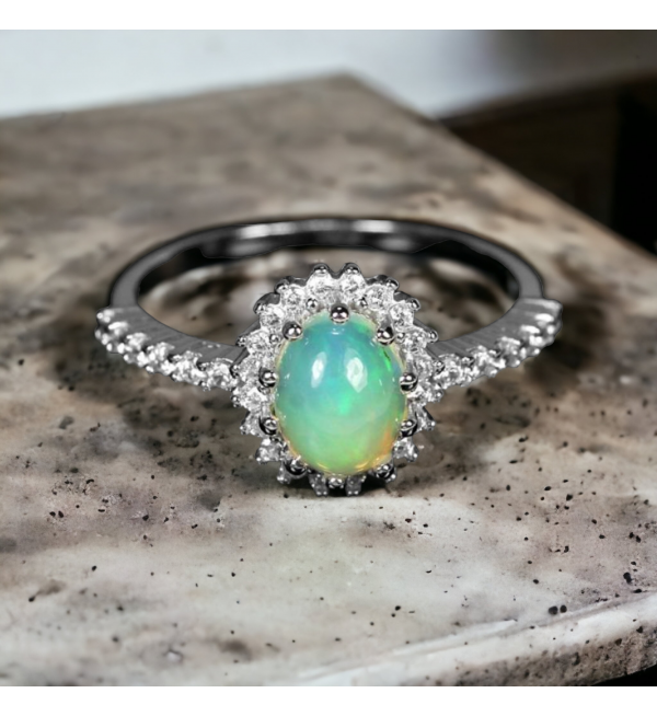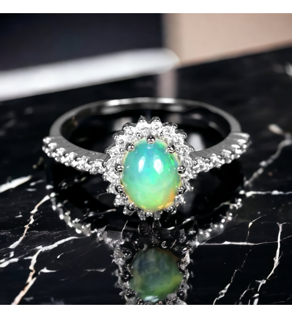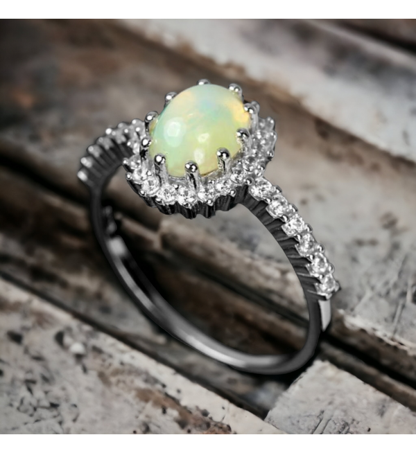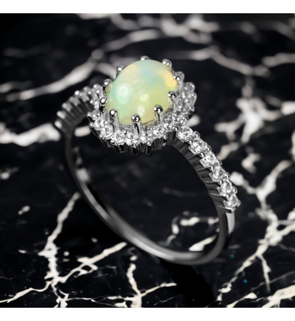 Серебряное кольцо с драгоценным опалом из Эфиопии