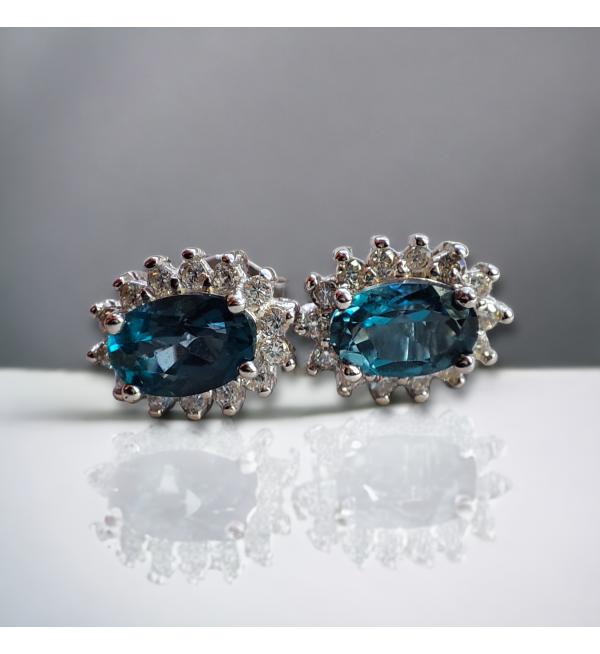 Серьги гвоздики с Лондон топазом купить в Киеве, Одессе, Днепре, Львове, Николаеве, Запорожье