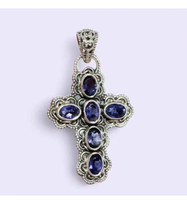 Серебряный кулон крестик с натуральным иолитом купить в Украине: цена, фото