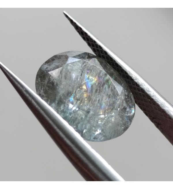 Коллекционный Натуральный черный с радугой Аквамарин с редкими включениями биотита 11.1*9.1мм купить в Украине.