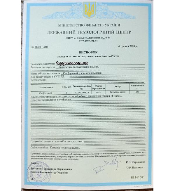 Драгоценный камень синий сапфир с Сертификатом 9.8*7.9мм (овал): цена, фото, купить в Украине