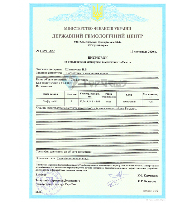 Драгоценный камень синий сапфир 12.2*9.5мм (овал) Сертификат: цена, фото, купить в Украине