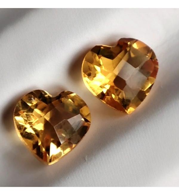 Натуральный цитрин пара огранка сердце купить в Украине. Цитрин драгоценный камень купить в Киеве.