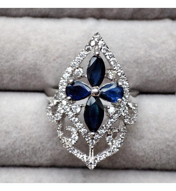 СРІБНІ ПРИКРАСИ З ТАЙЛАНДУ - СЕРЕБРЯНОЕ КОЛЬЦО С САПФИРОМ НОЧЬ 17р