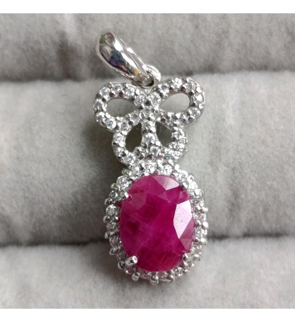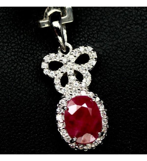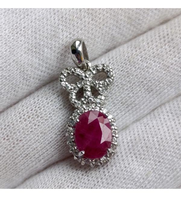 СРІБНІ ПРИКРАСИ З ТАЙЛАНДУ - Серебряный кулон с натуральным рубином Бантик