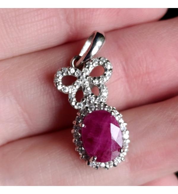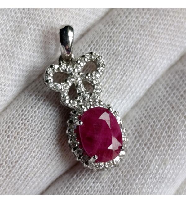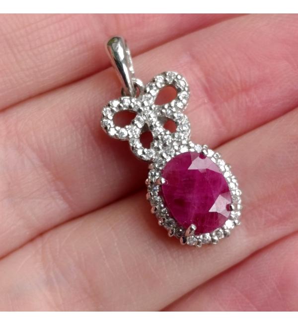 Серебряный кулон с натуральным рубином "Бантик"