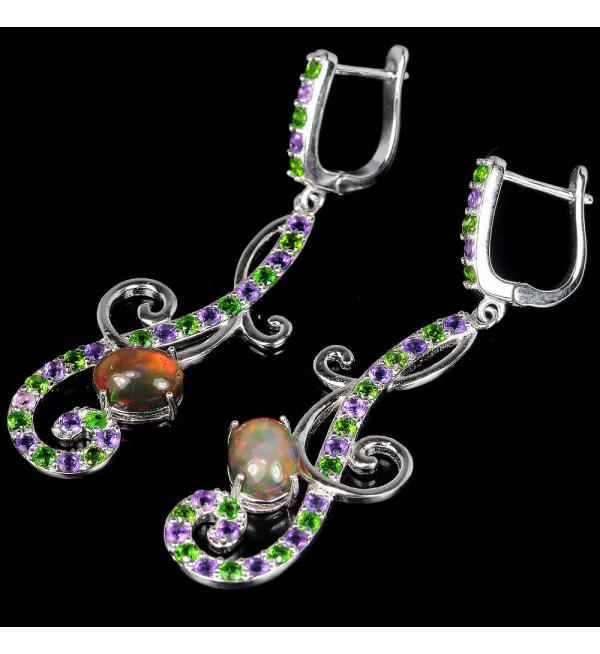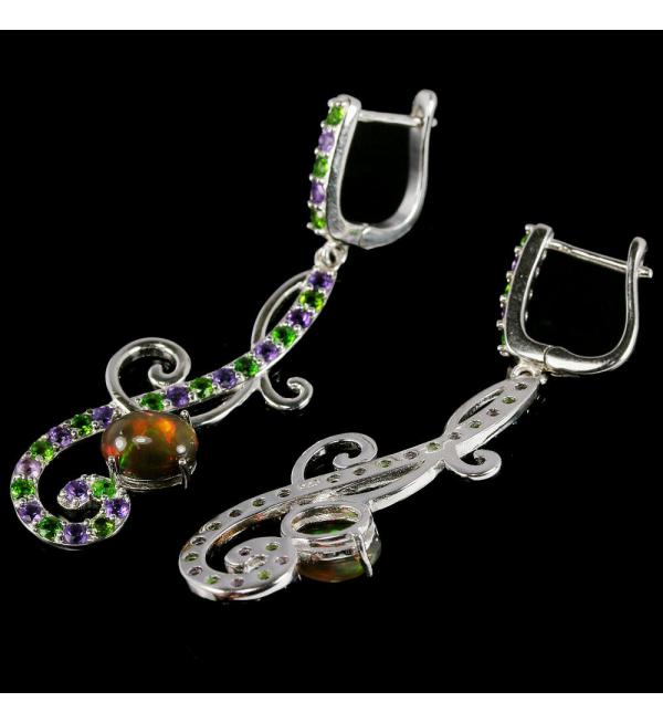 Срібні сережки з опалом, аметистом, цаворитом купити в Україні, в Києві