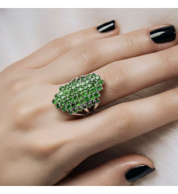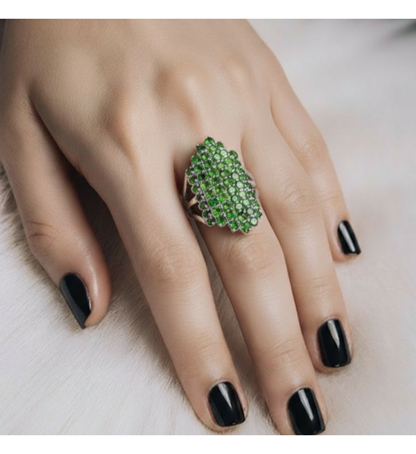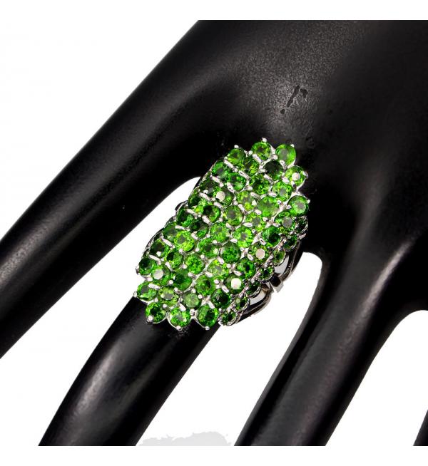 Срібний перстень з коштовним камінням хромдіопсид купити в Україні. Прикраса в наявності. Доставимо срібні прикраси з хромдіопсид в будь-яку точку України протягом 2-х днів.