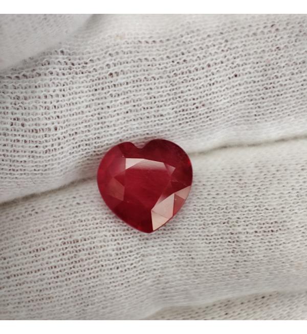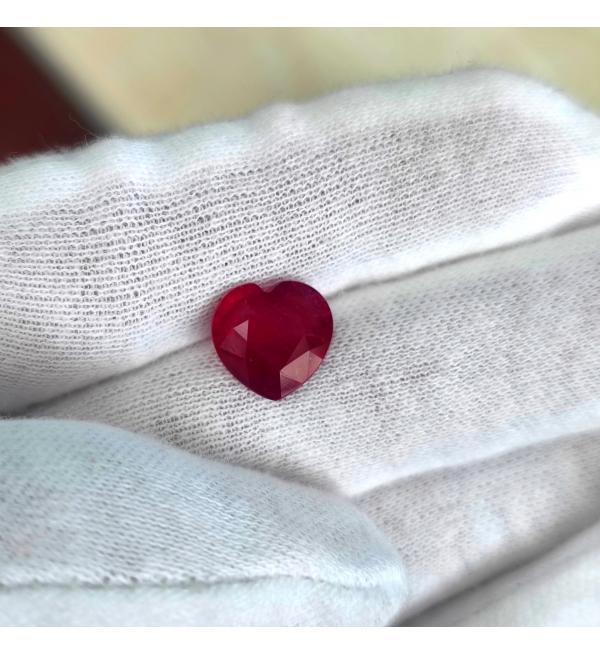 Дорогоцінний камінь Рубін кольору "голубина кров" (насичений малиново-червоний). Цей ексклюзивний камінь, символ любові і пристрасті ще й огранен в формі серця. Натуральний рубін стане ідеальним каменем для створення печатки, кулона або брошки. Цей неймовірної краси рубін піддавався методу облагородження, що є нормою для 98% рубінів на Світовому Ринку (решту 2% є дуже рідкісними екземплярами, що продаються з аукціонів з цінами від 20 000 уе за карат). Даний рубін дуже хорошої якості ограновування і чистоти. Камінь стане ідеальним подарунком і талісманом.