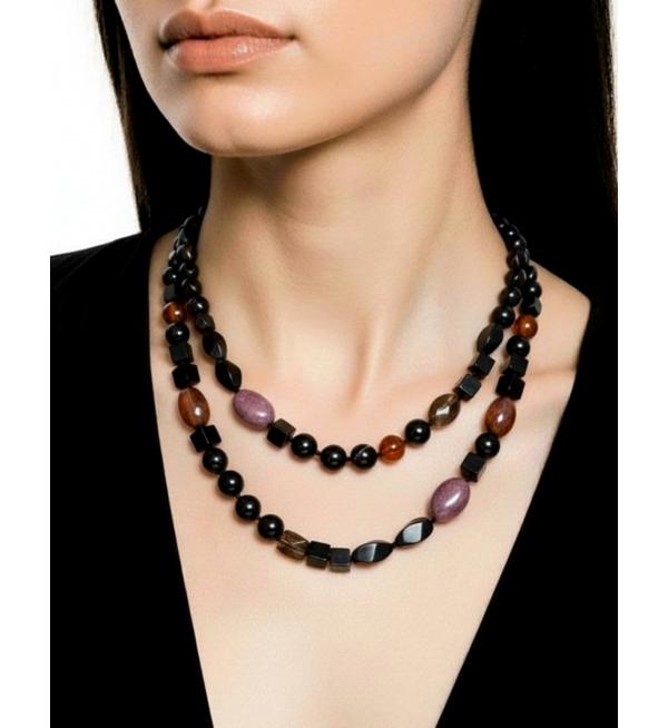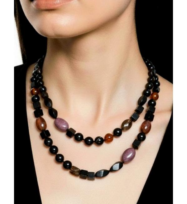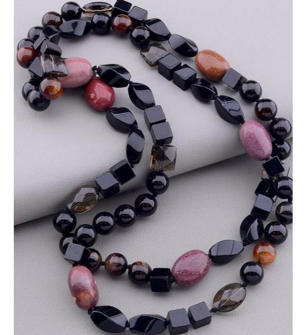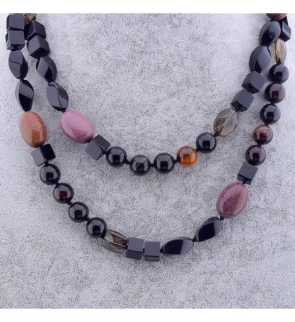 - Головна > ПРИКРАСИ З НАТУРАЛЬНОГО КАМІННЯ > Ексклюзив! Намисто чорний агат, яшма, сердолік, раухтопаз 100см