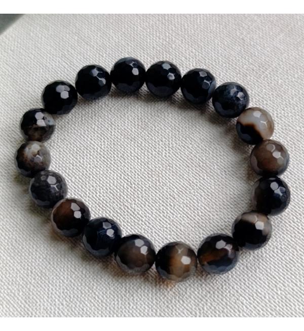 Браслет с натуральным черным агатом (на резинке) 18см "Сила и защита"